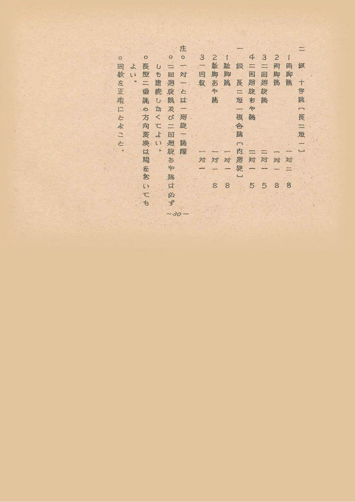 (2)軽い種目から始める。急に二回廻旋とびなどを連続して行なわないこと。
