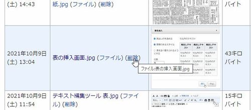 - 3. 表示された「ファイル一覧画面」でファイルを選択し「削除」をクリック