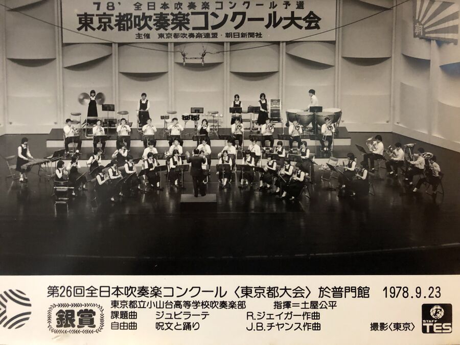 - 上の画像は1978年(昭和53年)吹奏楽コンクール東京都大会(本選)。普門館(2011年東日本大震災以降使用中止となり2018年取り壊された)