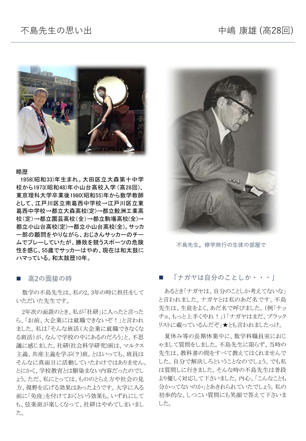 - 高28回 中嶋 康雄さんからの寄稿を以下に掲載しています。
