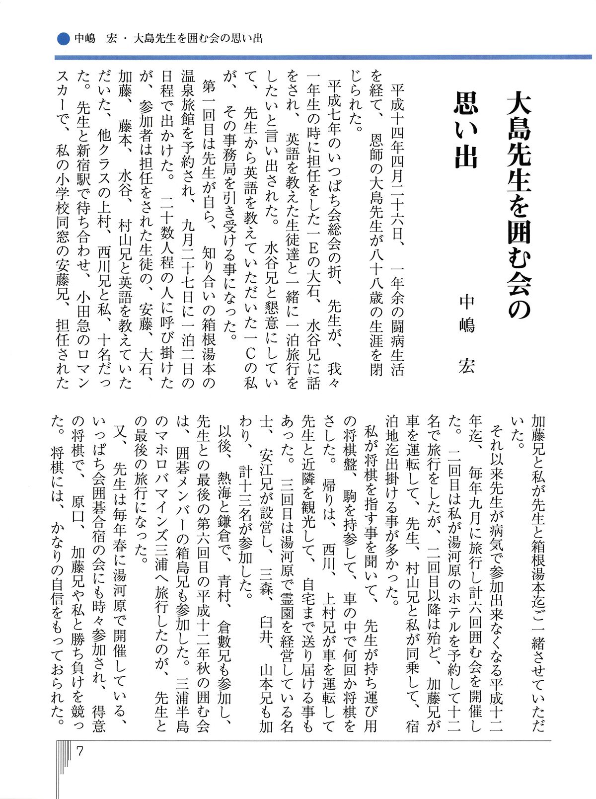 - 「目次 01」の「大島先生を囲む会 の思い出:中嶋 宏」(下のボタンを押すと全文が表示されます)