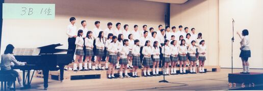 - この合唱コンクールは、校歌を覚えること、新年度の学級づくり、全員が合唱の楽しさを味わうなどをを主な目的として、音楽科と生徒部(石黒冨美男部長)の企画立案によって推進され、実現したものである。