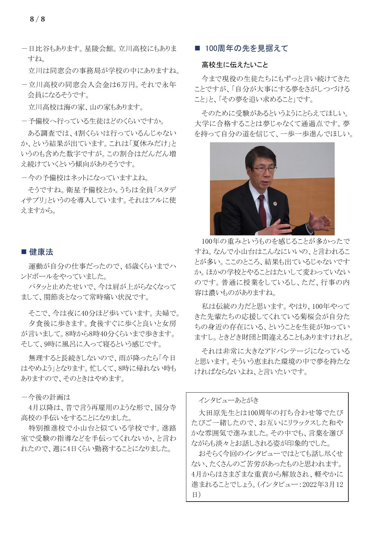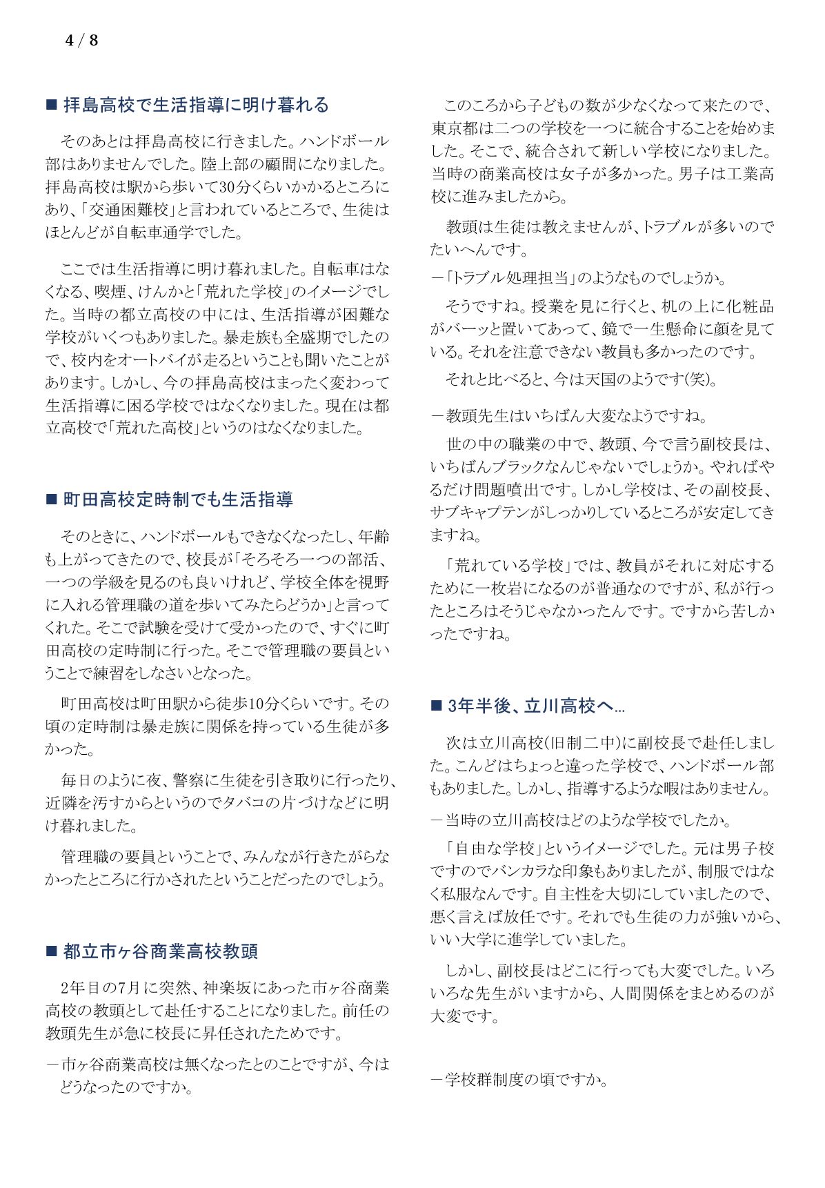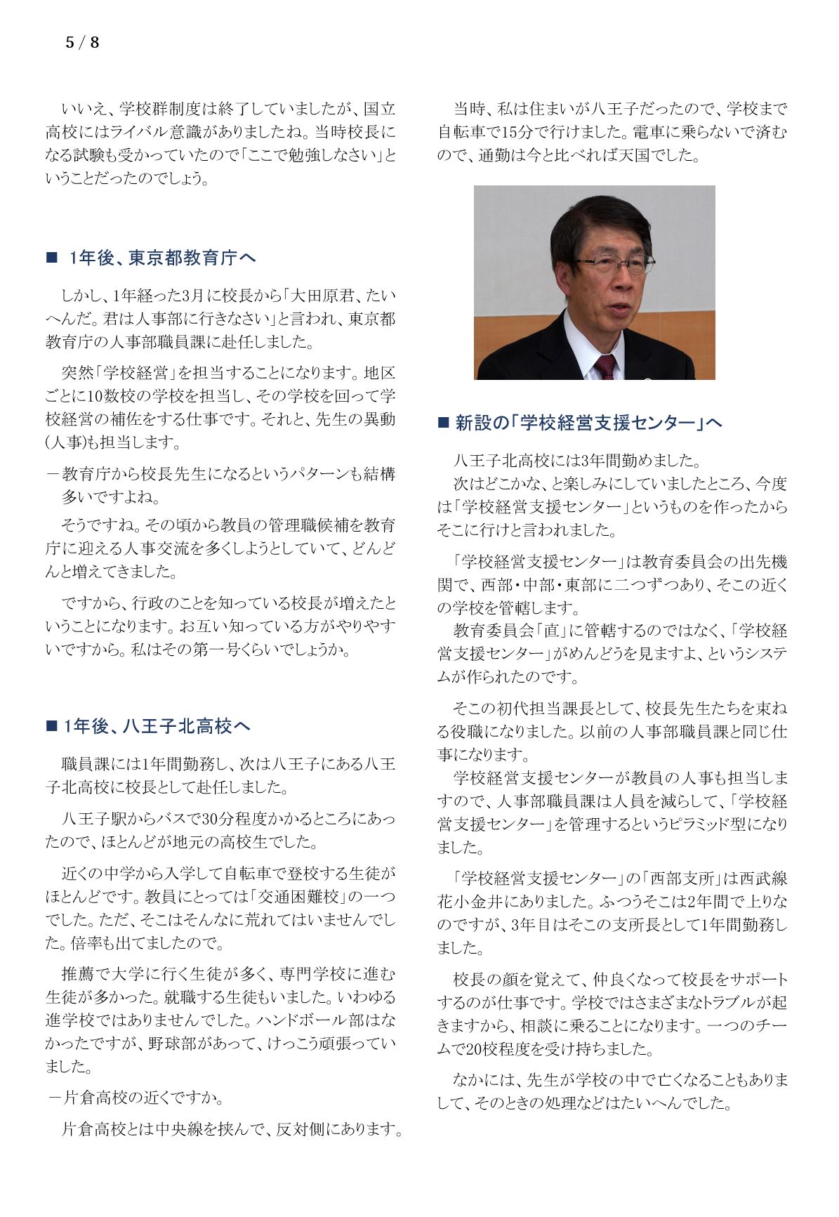 - 2014(平成26)年 4月 1日 東京都教育庁より小山台高等学校第21代校長として着任