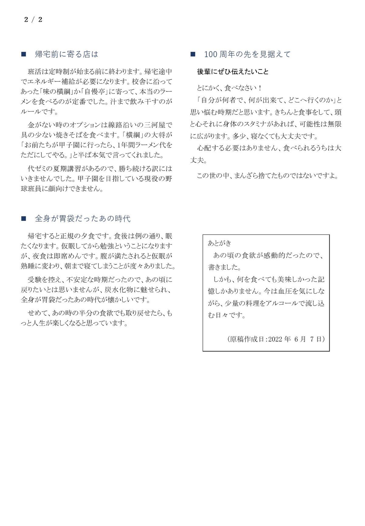 - 高20回 島田 元生さんからの寄稿を以下に掲載しています。