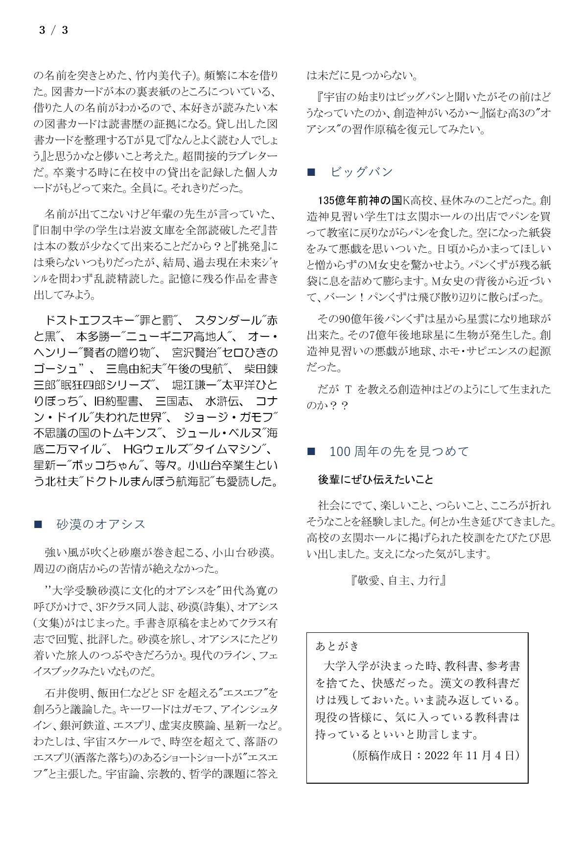 - 高19回 手島 直幸さんからの寄稿を以下に掲載しています。