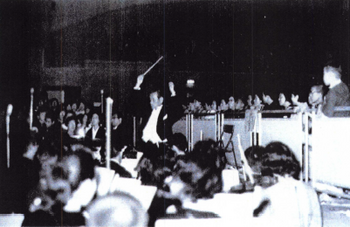 しかしながら、戦争の拡大・激化とともにこうした音楽活動は次第に先細りになり、先生も音楽生活の重点を音楽教育の面に置かざるをえなくなった。こうして先生は「上野」の分校や府立八中、府立十高女の教壇に立つに至った。 やがて日本の敗色がますますその濃さをましていた昭和19年、先生は海軍に召集された。 昭和19年の我々は、四修者、軍関係進学者はすでに八中を去り、残る大半の生徒は二か所の勤労動員先向上に分散、武蔵小山の校舎に登校することほとんどなかったから、先生の応召を見送った18回生はおそらく誰一人いなかったことと思う。 終戦後しばらくして、先生は無事復員された。