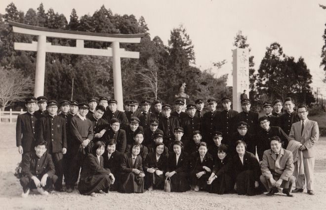 - 1958(昭和33)年 遠足 香取市香取神社 2F集合写真 担任 竹内康雄先生