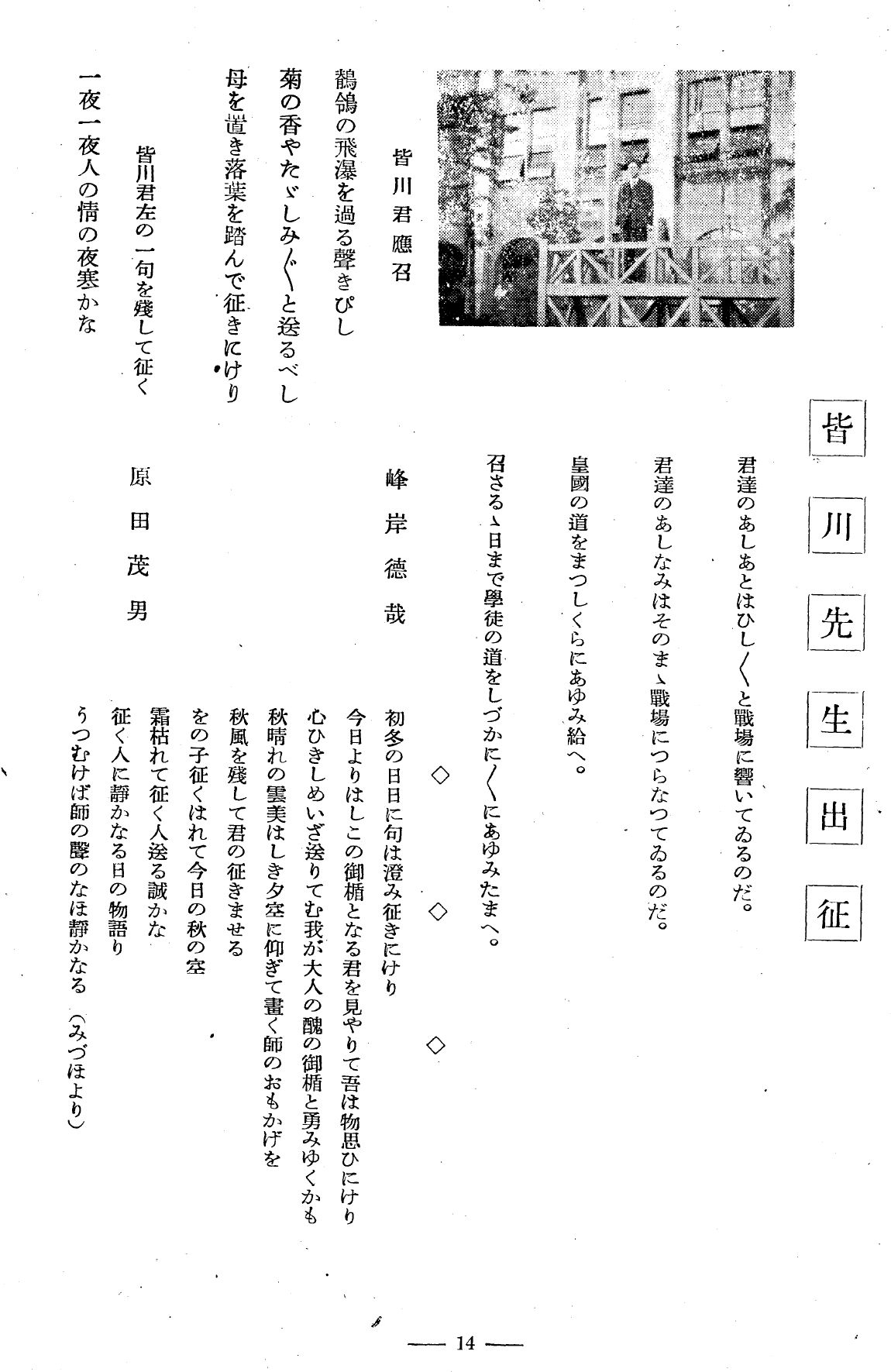 - 「皆川一郎」先生が出征され「皆川先生出征」が掲載されています。