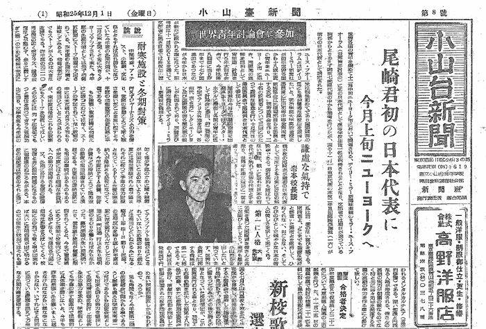 - 「小山台新聞1950(昭和25)年12月1日発行」は以下のリンクからご覧になれます。→ 「小山台新聞1950(昭和25)年12月1日発行」へのリンク