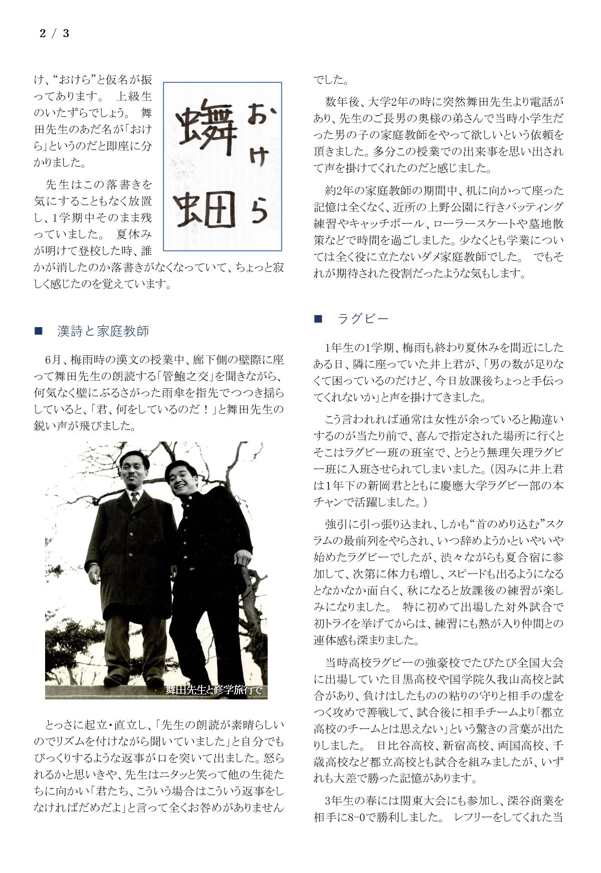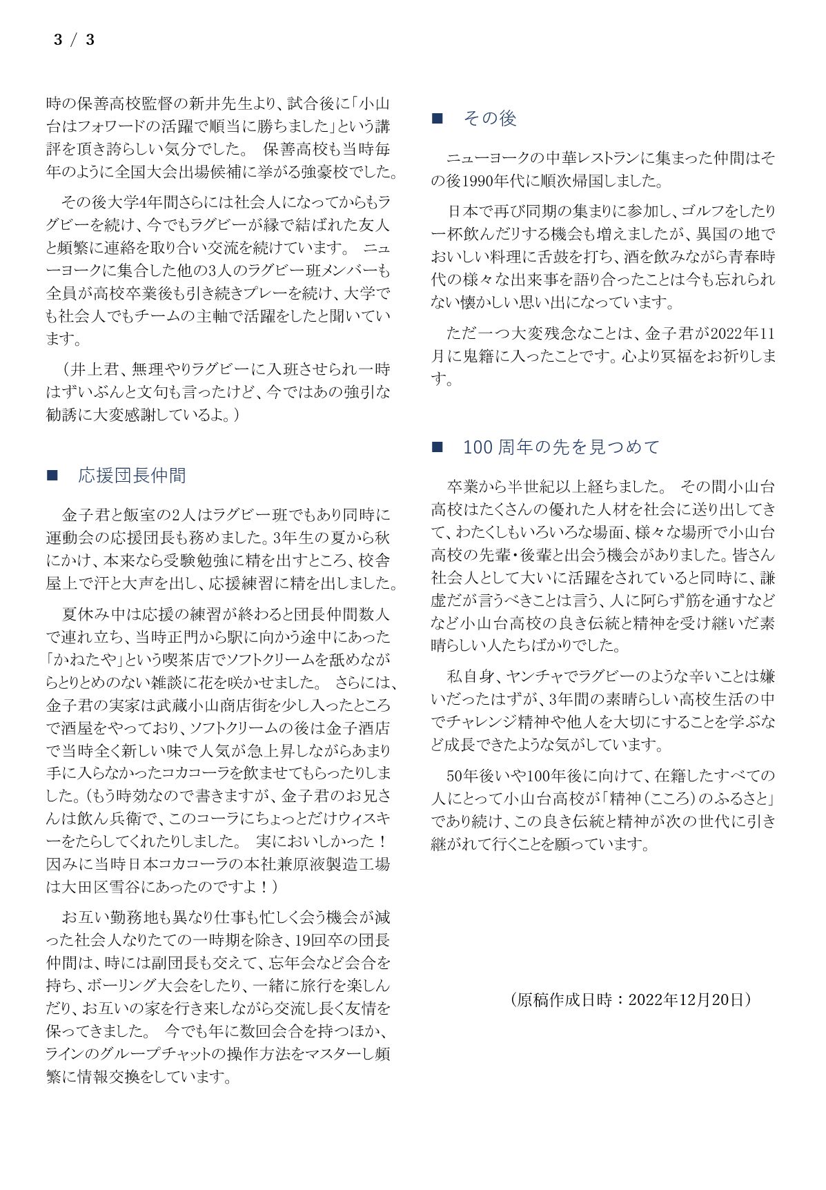 - 卒業生、同窓生から創立100周年を記念していただいた「寄稿」を掲載しています。(敬称略)