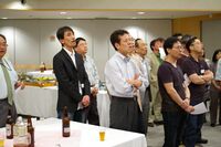 - 二次会は会場をおしゃれなモール街の「銀次」に移しての懇親会。斉藤くんも間に合って、小林副団長、桑名、中村両名のブラバンOBや福原、吉田も交えて