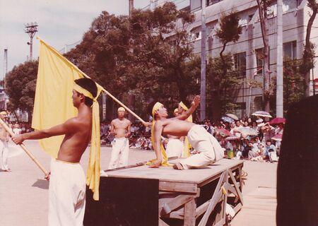 ファイル:1979(昭和54)年_応援合戦.jpg|<div style="text-align:center; >応援合戦 (黄組)</div>