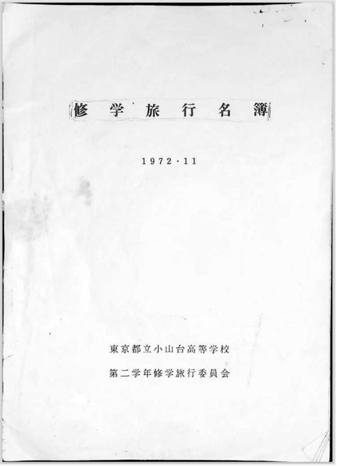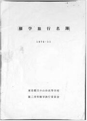 | 2023年10月17日 (火) 16:48 | 修学旅行 名簿 表紙.JPG (ファイル) | 73キロバイト | 1 | ||